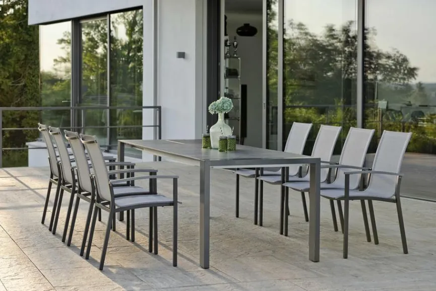 Formschönes Design trifft Stabilität und Langlebigkeit – Gartenmöbel aus Aluminium mit Textilene begleiten Sie ein Leben lang. Das wunderbar leichte, pulverbeschichtete Aluminiumgestell geht eine harmonische Verbindung mit wetterfestem, luftdurchlässigem und besonders hautfreundlichem Kunststoffgeflecht aus hochwertiger Kunststofffaser ein. Dieses formstabile Gewebe ist nicht nur UV- und sonnenölbeständig, sondern auch wunderbar pflegeleicht, wasserabweisend und besonders schnell trocknend. Das Ergebnis ist ein modernes Möbelstück mit hervorragendem Sitzkomfort, das Ihnen lange Freude bereitet.