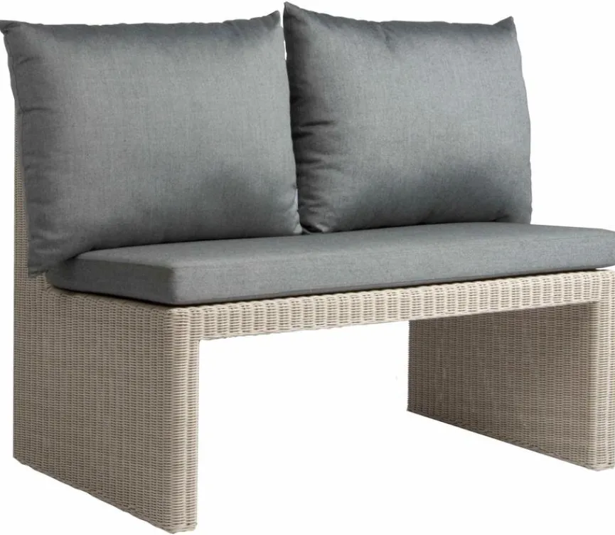 Die Gartenbank Noel, Geflecht von Stern bietet durch die weichen Sitz- und Rückenkissen stets einen hohen Sitzkomfort. Diese Parkbank hat eine bequeme Rückenlehnenhöhe, die ebenfalls zu einem wohligen Sitzen beiträgt. Durch das hochwertige und widerstandsfähige Material ist die Gartenbank Noel, Geflecht der Marke Stern ideal für die Anforderungen im Außenbereich abgestimmt.