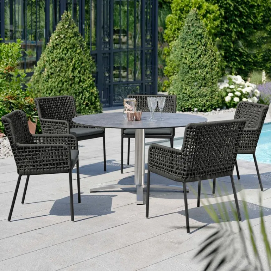 Formschönes Design trifft Stabilität und Langlebigkeit – Gartenmöbel aus Aluminium mit Textilene begleiten Sie ein Leben lang. Das wunderbar leichte, pulverbeschichtete Aluminiumgestell geht eine harmonische Verbindung mit wetterfestem, luftdurchlässigem und besonders hautfreundlichem Kunststoffgeflecht aus hochwertiger Kunststofffaser ein. Dieses formstabile Gewebe ist nicht nur UV- und sonnenölbeständig, sondern auch wunderbar pflegeleicht, wasserabweisend und besonders schnell trocknend. Das Ergebnis ist ein modernes Möbelstück mit hervorragendem Sitzkomfort, das Ihnen lange Freude bereitet.