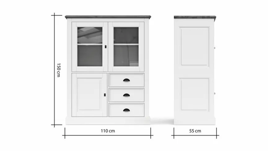 Liebhaber von Landhausmöbeln und des Scandi-Styles haben mit dem Highboard Barreiro ihre wahre Freude. Die attraktive Kommode präsentiert sich nämlich in rustikaler Optik und lässt sich daher perfekt mit diesen beiden Wohnkonzepten vereinbaren. Dafür sorgt nicht zuletzt die attraktive Kassettierung, die diesen Eindruck auf elegante Weise unterstreicht. Egal, ob im Wohnzimmer, Esszimmer oder Arbeitszimmer, das Highboard Barreiro schafft im Handumdrehen eine heimelige Atmosphäre.