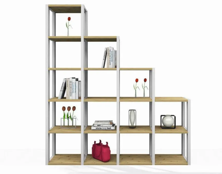 Mit der modernen Stufenregalkombi Padua realisieren Sie im Handumdrehen individuelle Wohnkonzepte. Nicht nur, dass das Treppenregal aufgrund seiner Stufen einen tollen Blickfang darstellt, es lässt sich auch perfekt unter der Dachschräge einer kleineren Wohnung unterbringen. So sorgt die vielseitige Stufenregalkombi Padua auf stylische Art für Ordnung, indem es viel Platz für Bücher, Dekorationen und Alltagsgegenstände bietet.