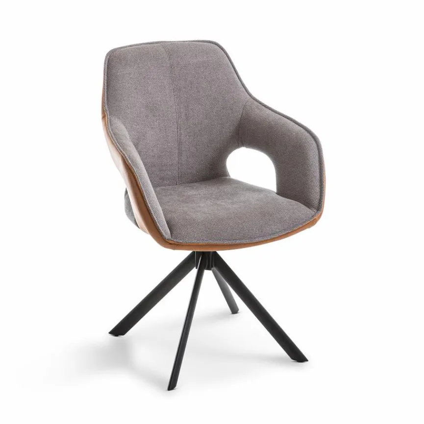 - Bezug auf der Vorderseite aus Stoff in grau, Bezug auf der Rückseite aus Lederoptik in braun