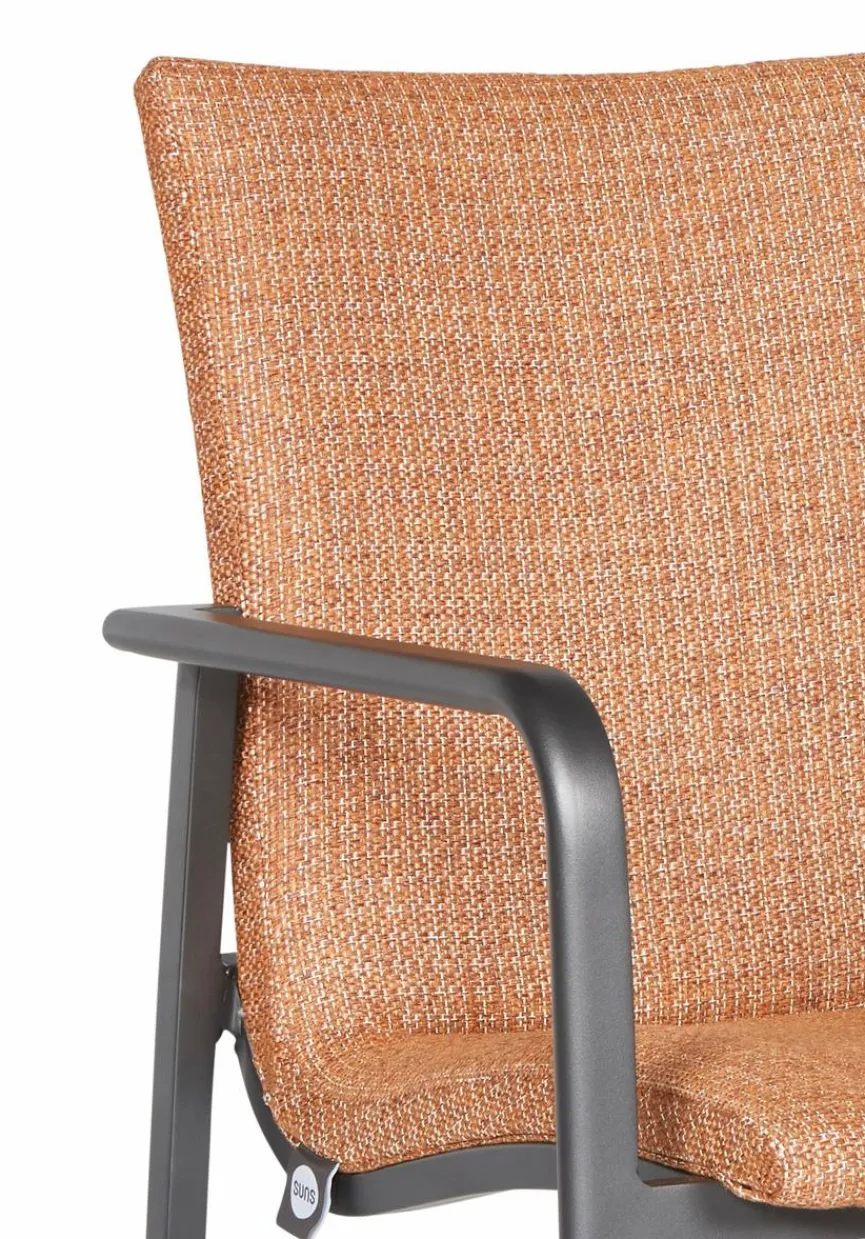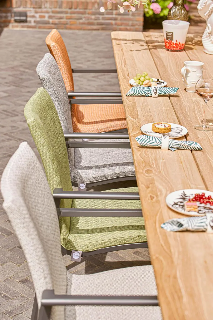 er Gartenstuhl SUNS Anzio kombiniert ein elegantes Design mit angenehmem Sitzkomfort und einer eleganten und fließenden Linienführung. Der Stuhl ist aufgrund seiner Form, Konstruktion und seines Materialgebrauchs sehr gut für lange Sommerabende geeignet. Dank der Verwendung hochwertiger Materialien hält SUNS Anzio lange und kann das ganze Jahr über draußen stehen bleiben. So ist beispielsweise die Sitzfläche mit Fast Dry Foam® gepolstert, so dass der Stuhl nach einem Regenschauer schnell trocknet. Der Gartenstuhl verfügt über Sunproof® – ein erstklassiger Stoff mit hervorragenden witterungsbeständigen Eigenschaften.Der Dining-Gartenstuhl SUNS Anzio lässt sich durch den Einsatz von Farben und besonderen Materialien problemlos mit verschiedenen Gartentischen aus den SUNS-Kollektionen kombinieren.