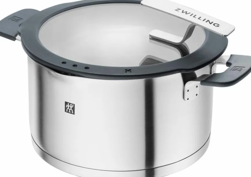 - Mit Sigma Classic+ Sandwichboden, Deckelhalterung, integriertem Sieb und Stay-Cool-Griffe