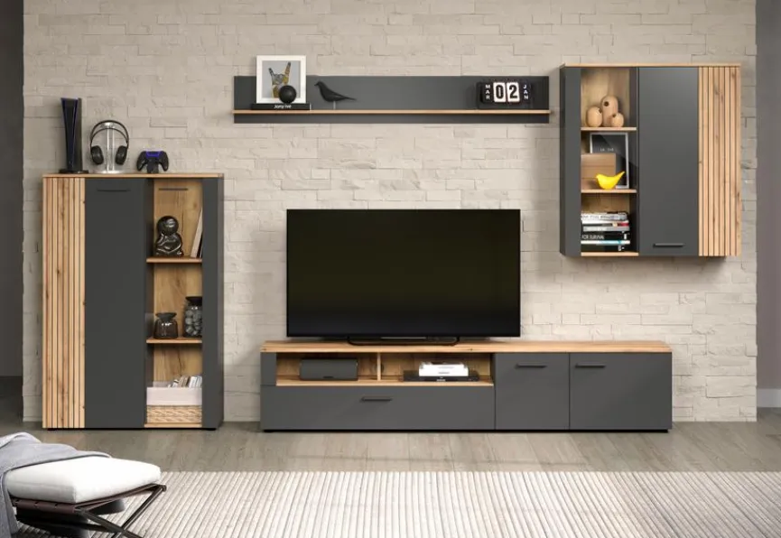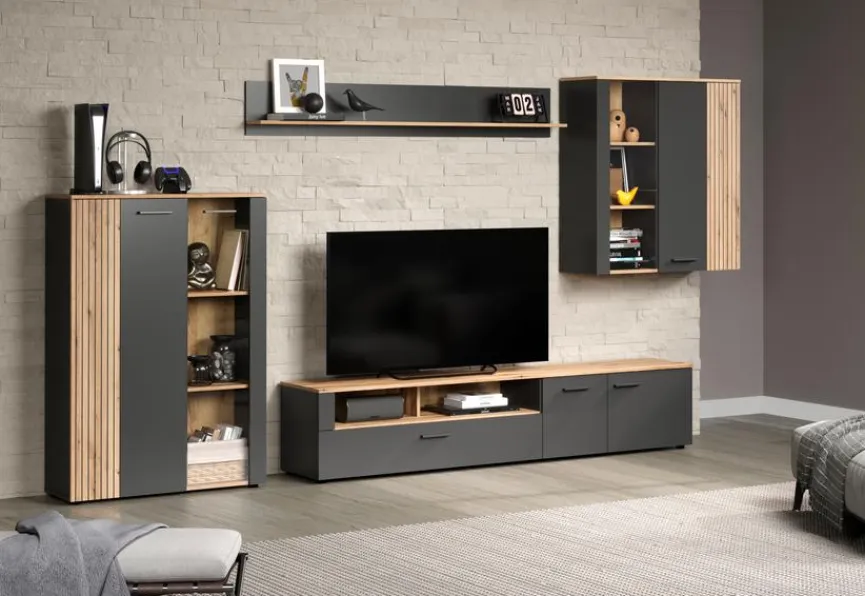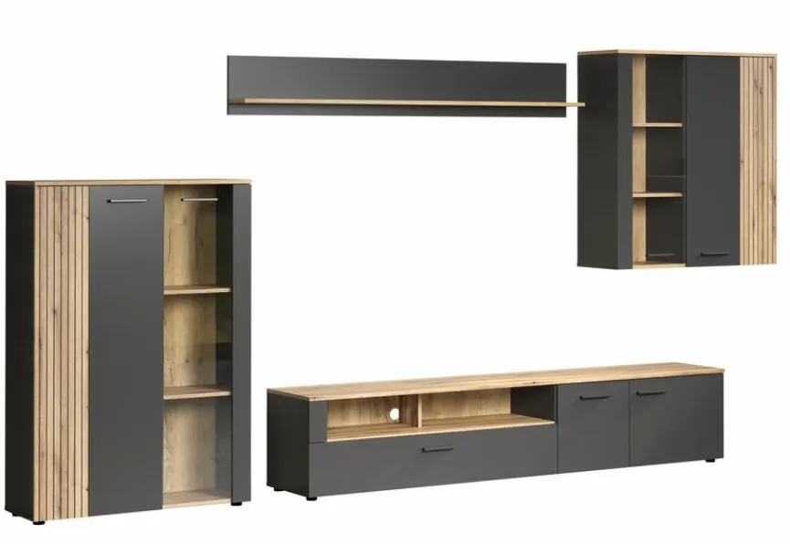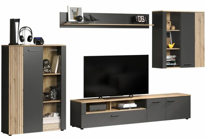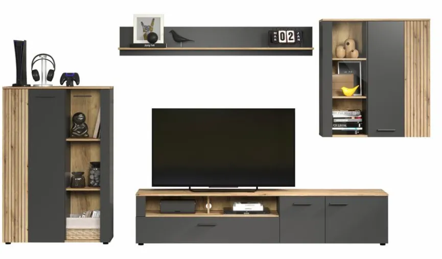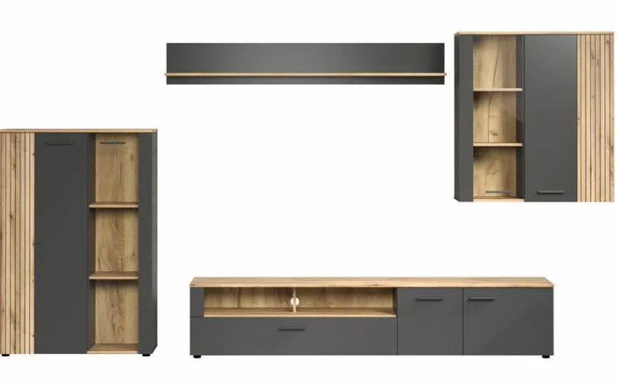 - Wohnwand bestehend aus Highboard, TV-Lowboard, Wandboard und Hängevitrine