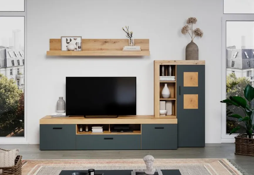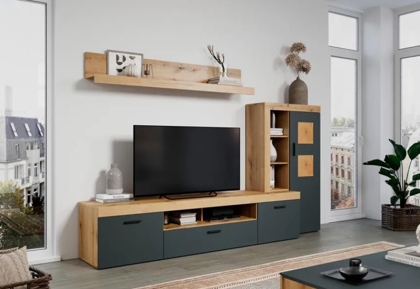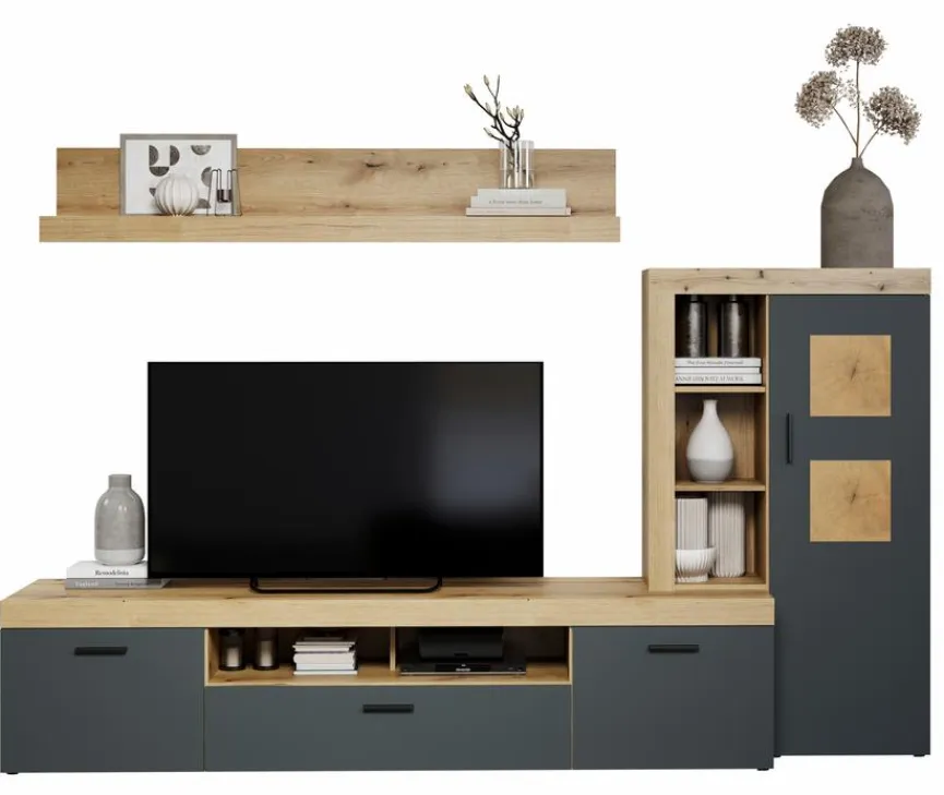 - Wohnwand bestehend aus TV-Lowboard, Wandboard und Highboard