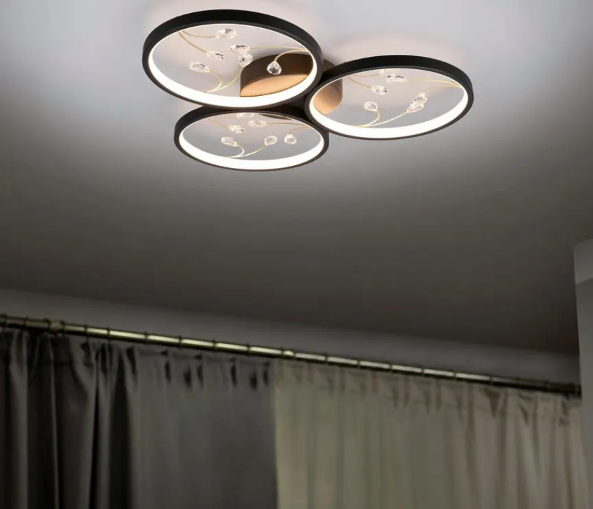 Die LED-Deckenleuchte Groovy aus dem Hause Trio bringt einen romantischen Touch mit sich. Drei kreisrunde Lichtelemente mit filigranen, zweigartigen Strukturen machen den modernen und gleichzeitig herrlich dekorativen Charme dieser LED-Deckenlampe aus. Kombinieren Sie die LED-Deckenleuchte Groovy zum Beispiel mit dezent klassisch akzentuierten Möbeln sowie Wohnaccessoires!