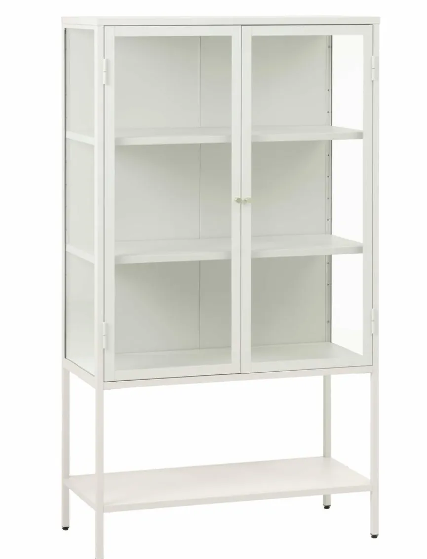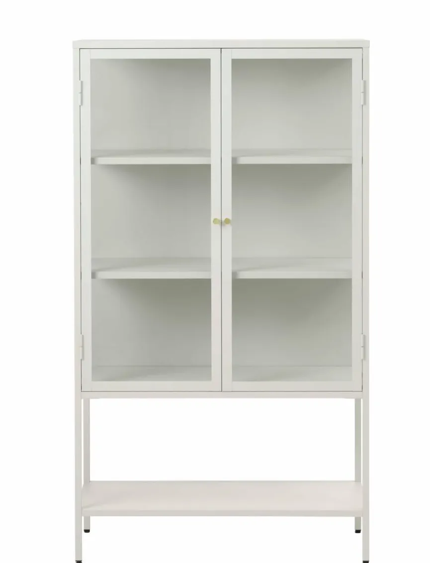 Mit der geräumigen Vitrine Carmel bereichern Sie vor allem Einrichtungen, die im modernen Chic gehalten sind. Die Glasvitrine bietet viel Platz auf drei Fachböden hinter den beiden Türen. Außerdem können Sie die Vitrine Carmel dank der verstellbaren Fußgleiter bequem in der Höhe verändern.