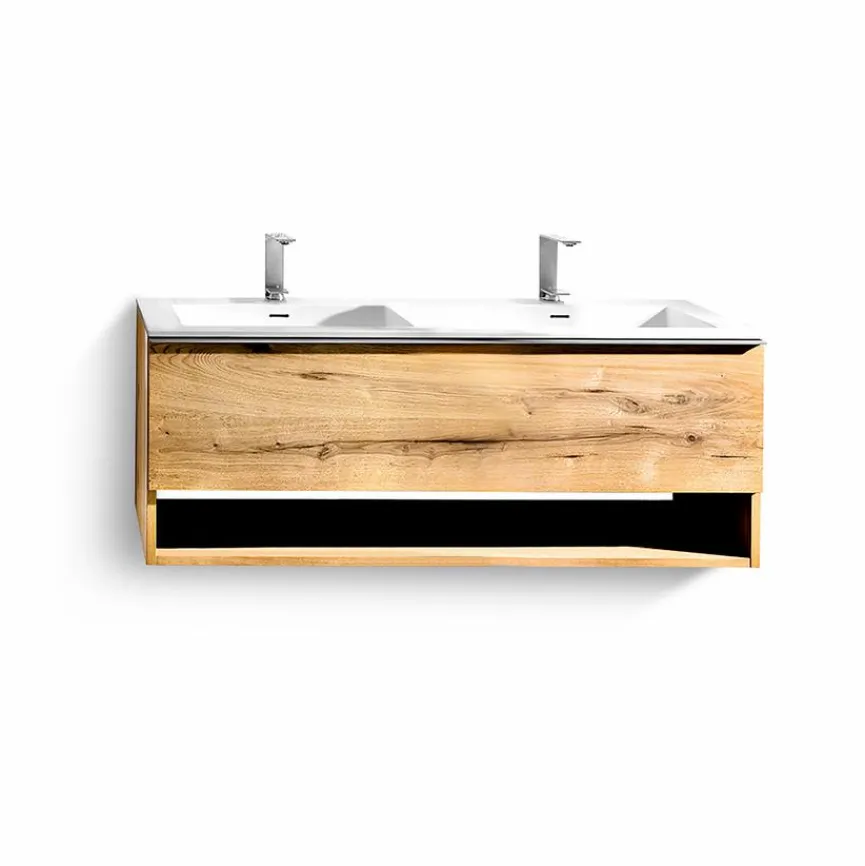 - Inklusive Doppel-Waschbecken in Accrylstein weiß, mit 2 Überlaufschlitzen und Überlaufgarnitur, mit 2 Hahnlochbohrungen