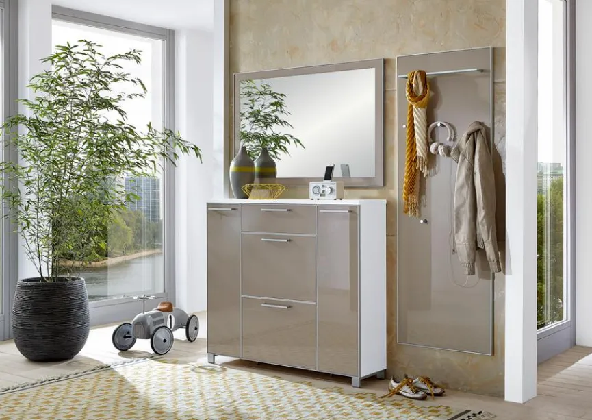 - Garderobe aus Schuhschrank, Spiegel und Garderobenpaneel