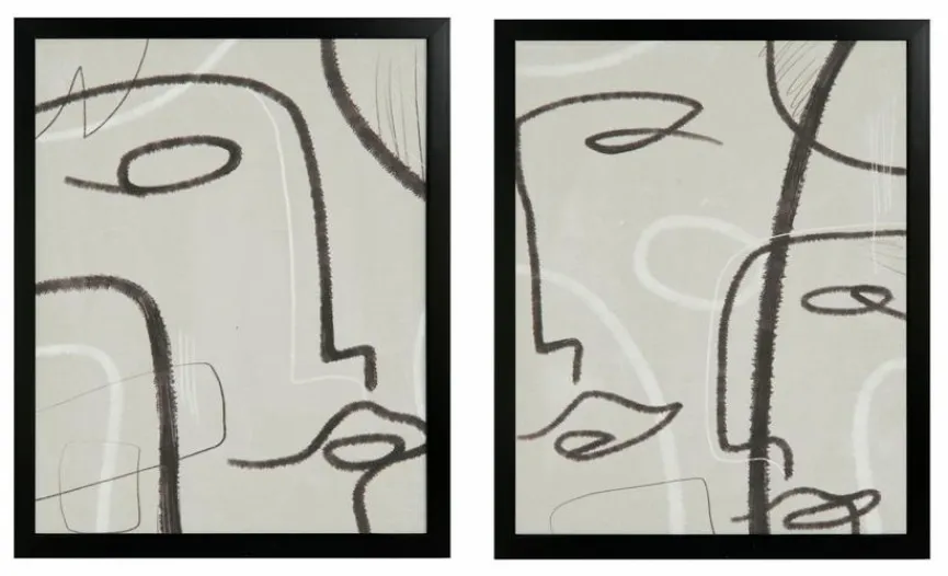 Eine schwungvolle Linienführung zeichnet das Wandbild 25×25 cm Faces aus, das stilisierte Gesichter zeigt und sich im Duo präsentiert. Mithilfe des Deko Bildes können Sie kahlen Flächen im Handumdrehen zu einem Blickfang verhelfen. Auch auf einem Sideboard stehend macht das Wandbild 25×25 cm Faces eine gute Figur.