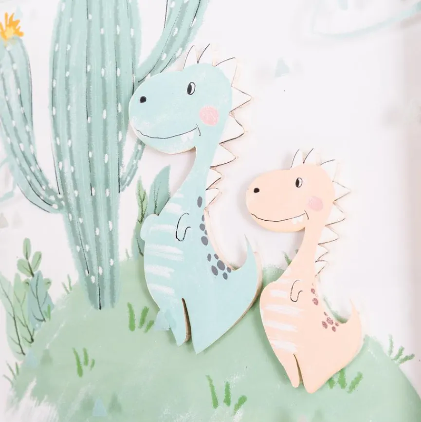 Überraschen Sie Ihre Kinder mit dem Wandbild 32,6×32,6 cm Kaktus mit Dino II! Dieses zauberhafte Deko Bild wurde wie eine Collage gefertigt und lässt die beiden drolligen Dinosaurier beinahe lebendig wirken. Zusätzlich wirkt die handgemalte Optik sehr kindgerecht und authentisch. Solch eine herzerwärmende Zeichnung wie auf dem Wandbild 32,6×32,6 cm Kaktus mit Dino II gehört einfach in jedes Kinderzimmer.