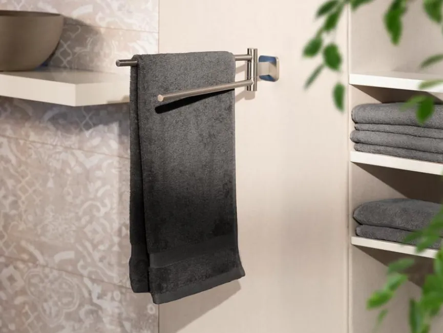 Ein stilvolles Design-Highlight mit hoher Funktionalität ist der aparte Handtuchhalter Porto von WENKO. Auch unterschiedlich große Handtücher können dank seiner zwei beweglichen, schwenkbaren Armen säuberlich aufgehängt werden, leicht trocknen und sind zudem stets griffbereit. Egal, ob im Haupt- oder Gästebad, der dekorative und praktische Handtuchhalter Porto sorgt für ein organisiertes Badezimmer, macht den Alltag angenehmer und ist eine Style-Inspiration mit praktischem Mehrwert.