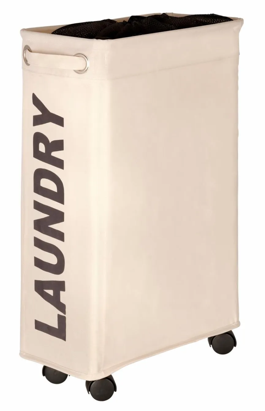 Der Wäschekorb Corno aus dem Hause WENKO wertet mit einem schicken und darüber hinaus durchdachten Design auf. Tragegriffe und vier leichtgängige Rollen sorgen für eine einfache Handhabung. Vor allem bei beengten Raumverhältnissen ist der Wäschekorb Corno von WENKO eine gute Option, da er herrlich schmal gestaltet ist.