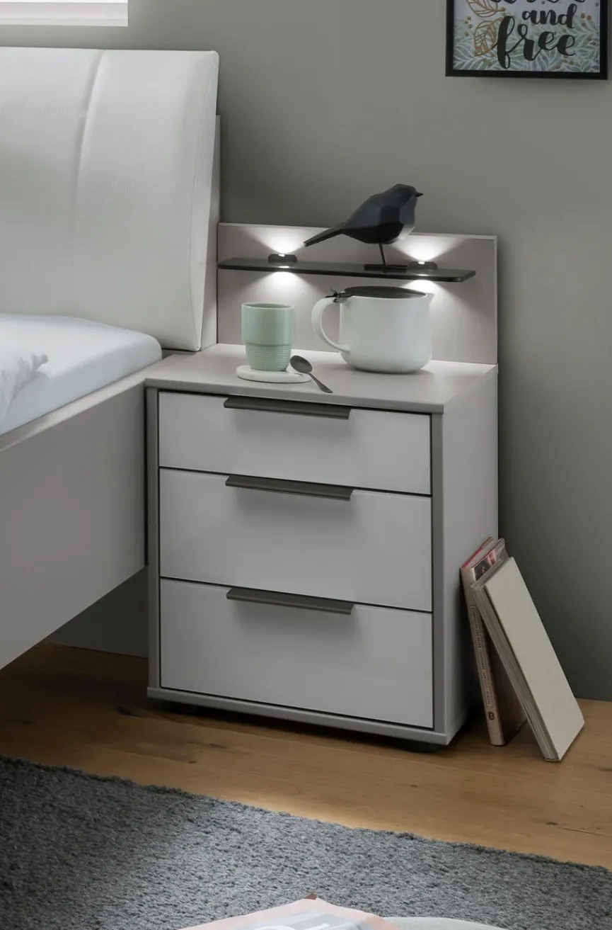 Gestalten Sie Ihr Schlafzimmer trendig und modern mit dem Nachttisch Merida von Wiemann. Die Nachtkonsole überzeugt durch ihre klaren Formen, den schlichten Look und das edle Design. In seinen drei Schubkästen bietet der Nachttisch Merida viel Platz für Lesestoff, Medikamente, Taschentücher und sonstige Dinge, die Sie neben dem Bett gerne in Griffnähe haben.