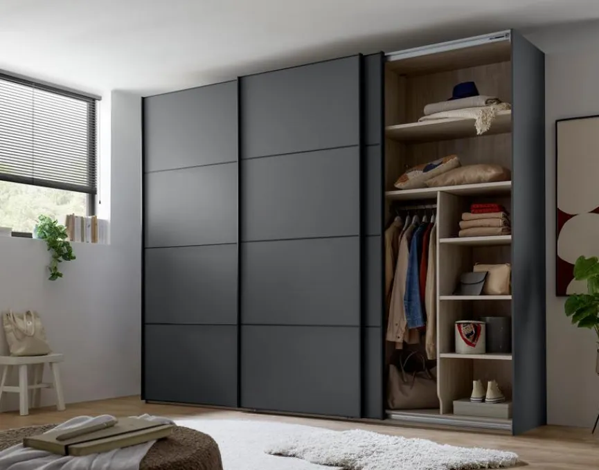 Der Schwebetürenschrank Phoenix 250×217 cm von Wiemann bringt durchdachten Stauraum und elegantes Design in Einklang. Mit seiner großzügigen Innenaufteilung bietet der Schwebetürenschrank Phoenix 250×217 cm viel Platz für Kleidung, Wäsche und Accessoires. Der moderne Kleiderschrank fügt sich harmonisch in verschiedene Wohnkonzepte ein und überzeugt mit Funktionalität.
