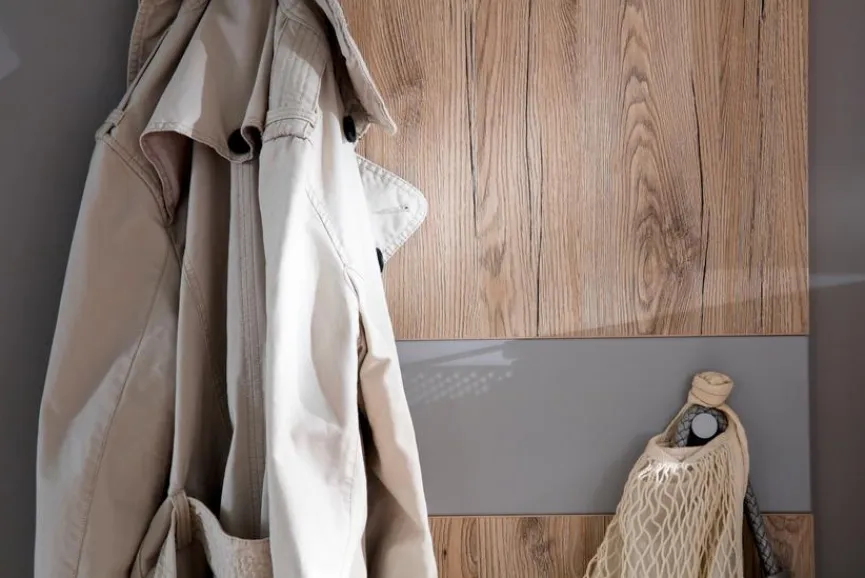 - Garderobe aus Garderobenpaneel, Kommode, Spiegelschrank, Akku-Sensorleuchte und Kleiderschrank