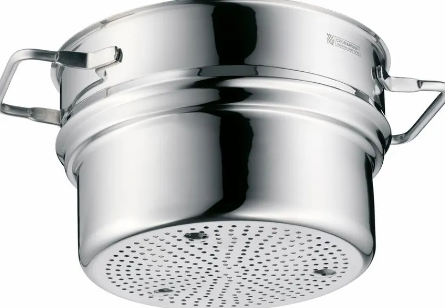 Der Dünsteinsatz 20 cm aus dem Hause WMF ermöglicht die schonende Zubereitung von Speisen wie im Handumdrehen. Er ist aus hygienischem Chromagan gefertigt und darf in keiner Küche fehlen. Mit dem Dünsteinsatz 20 cm ist gesunde Ernährung ein Kinderspiel. Durch seine Größe von 20 cm passt der Dämpfeinsatz von WMF in kleine und mittelgroße Töpfe und ermöglicht so eine leichte Entnahme des Dünstgutes.