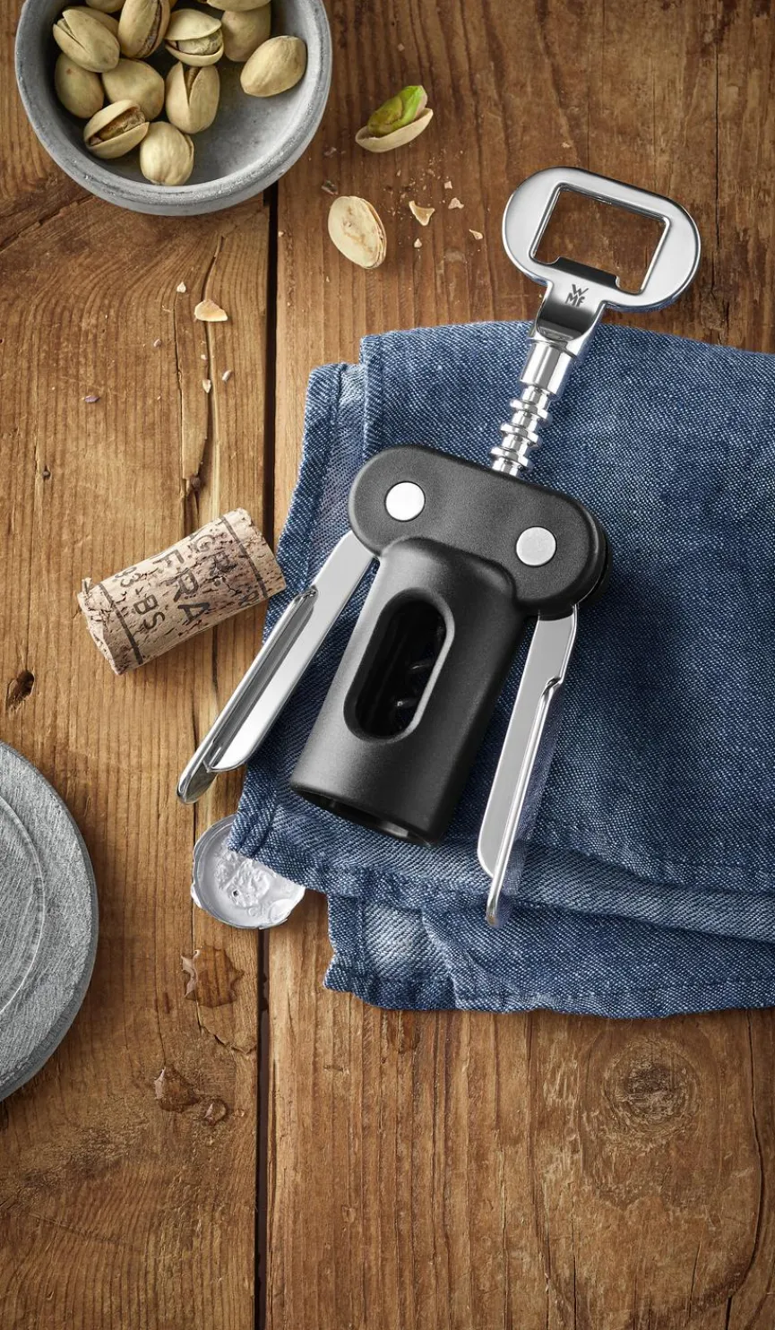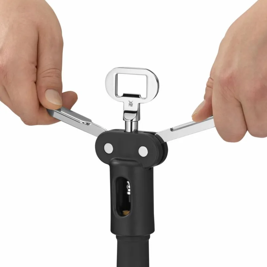 Der WMF Hebelkorkenzieher Clever & More 20 cm ist für jeden Weinliebhaber ein verlässliches Utensil. Er erlaubt es, Flaschen mit einem Korken nahezu ohne Kraftaufwand zu öffnen. Darüber hinaus verfügt der Hebelkorkenzieher Clever & More 20 cm von WMF am Griff über einen Kapselheber, mit dem Sie einfach Kronkorken entfernen können.