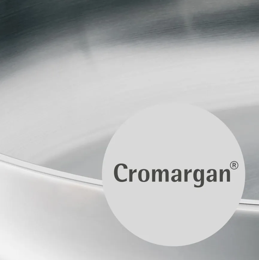 Die Bratpfanne Profi Ø 28 cm aus dem Hause WMF ist ein echter Klassiker, der von Hobbyköchen und Profis gleichermaßen geschätzt wird. Mit seinem TransTherm®-Allherdboden ist das Küchenaccessoire für sämtliche Herdarten geeignet und liefert optimale Ergebnisse. Dank Cromargan® Edelstahl Rostfrei 18/10 ist die Bratpfanne Profi Ø 28 cm langlebig und darf unter Berücksichtigung der Maximaltemperatur auch in den Backofen.