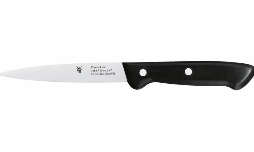 Dank der spitzen Klinge bietet sich das Spickmesser Classic Line 20 cm von WMF wunderbar zum gezielten Schneiden von Fleisch an. Aber auch zum Zerkleinern von Kräutern oder Gemüse kann dieses Messer natürlich sehr gut verwendet werden. Das Spickmesser Classic Line 20 cm aus dem Hause WMF wartet mit einem ergonomisch gestalteten Griff auf.