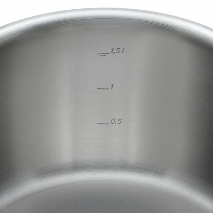 - Mit TransTherm-Allherdboden, wärmereduzierenden Griffen, Mess-Skala und breitem Schüttrand,