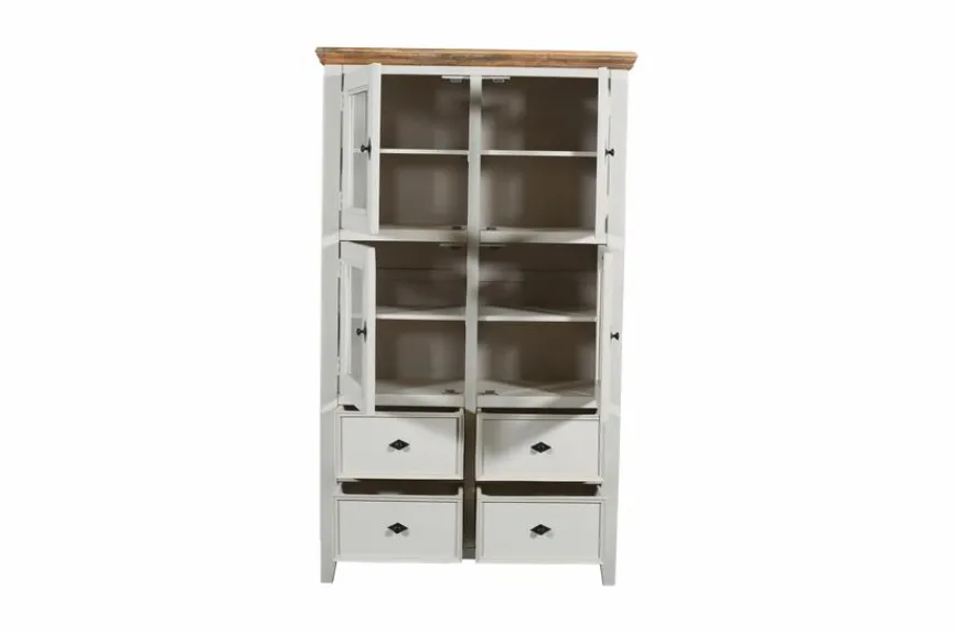 Wenn Sie Einrichtungsgegenstände im ikonischen Retrocharme lieben, ist die Vitrine Country aus dem Hause WOLFMÖBEL für Sie wie geschaffen. Dank des zauberhaften Designs erzeugt der Schrank eine Stimmung voller Gemütlichkeit und Romantik. Dabei punktet die Vitrine Country durch die wunderschöne Aufteilung der Front mit zahlreichen Türen und Schubladen.